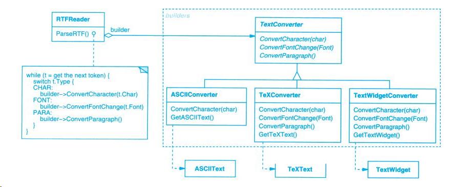 - ConcreteBuilder:(ASCIIConverter、TeXConverter、 TextWidgetConverter)