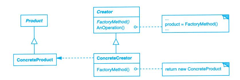 - Creator 依赖子类重载工厂方法以返回合适的 ConcreteProduct