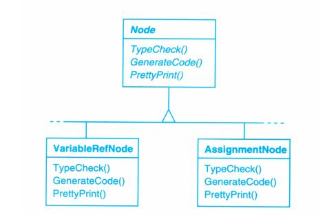 考虑一个编译器,它将源程序表示为一个抽象语法树,对于语法树结点需要进行不同的处理:类型检查,代码优化等