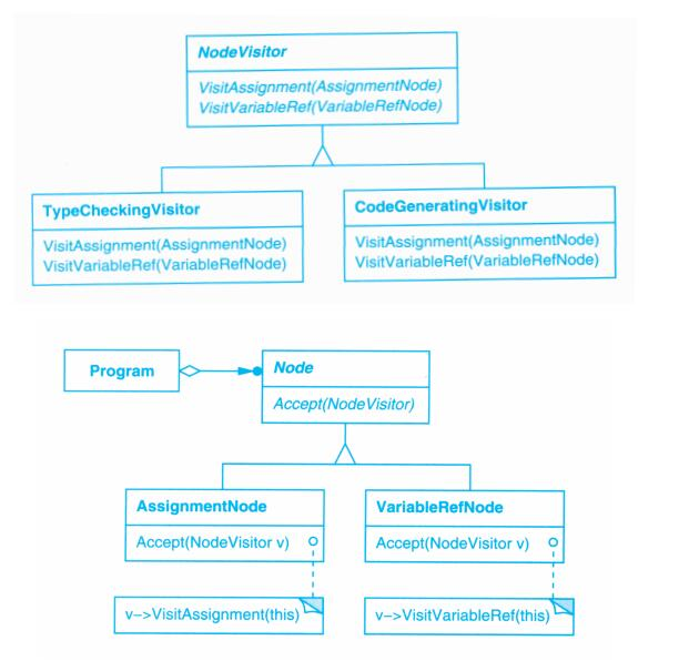 - 将操作和结点类耦合带来的问题:将所有这些操作分散到各种结点类中会导致整个系统难以理解、难以维护和修改;此外,增加新的操作通常需要重新编译所有这些类