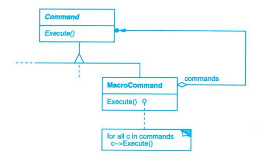 - 可将多个命令装配成一个组合命令(一般说来,组合命令是 Composite 模式的一个实例)