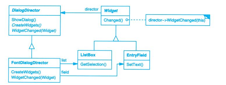- 在 Mediator 中定义一个特殊的通知接口,各 Colleague 在通信时直接调用该接口