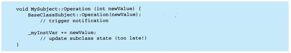 确保发出通知时,自身状态完成更新:Publisher 的子类重载操作时容易出现这种问题: