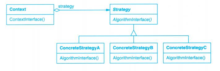 - 另一种办法是让 Context 将自身作为一个参数传递给 Strategy ,或 Strategy 存储对它的 Context 的一个引用